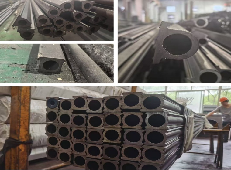 From the blank tube to the finished product size, it is designed to be multiple cold drawing passes. Since this special-shaped steel pipe is unequal, the introduction angle and inner mold size of each set of mold determine the changes in the shape size and wall thickness. The best cold drawing deformation coefficient is controlled between δ=1.5-h.